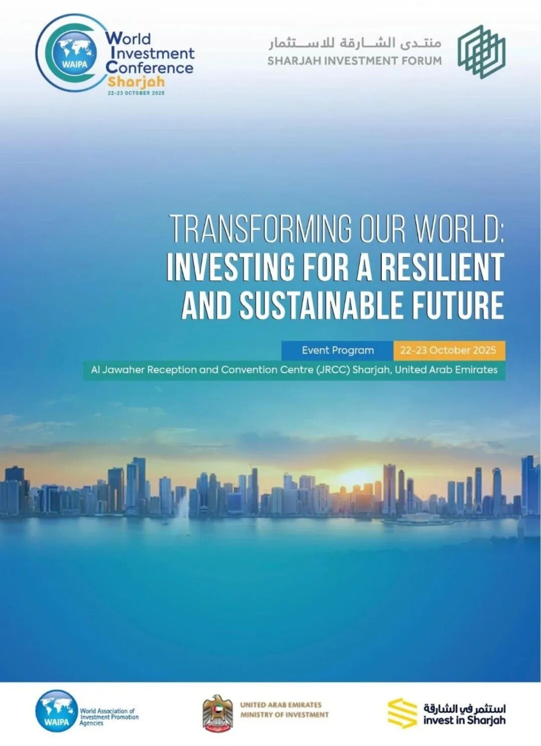 第29届世界投资大会暨第8届沙迦投资论坛将于2025年10月21日至23日在阿联酋沙迦举行。今年也是世界投资促进机构协会(The World Association of Investment Promotion Agencies, WAIPA)成立30周年。这两项活动将由世界投资促进机构协会、沙迦FDI办公室和阿联酋投资部联合举办。